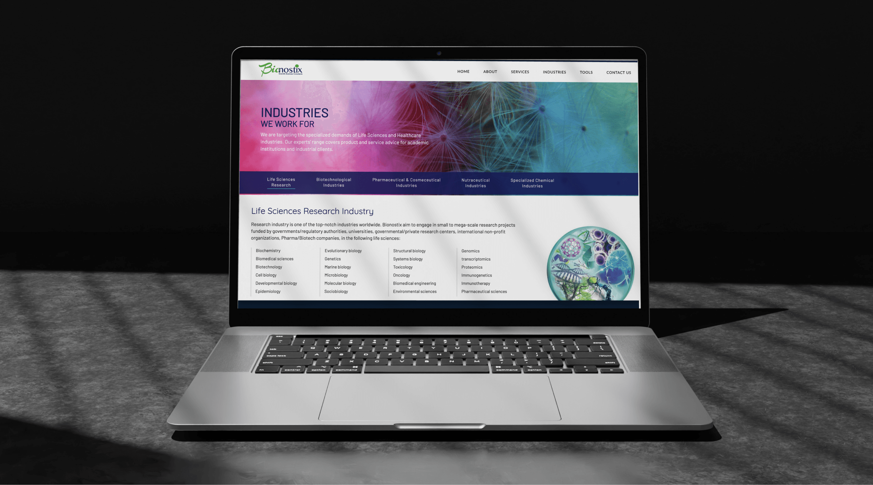 Bionostix's website was designed to showcase their comprehensive range of services and expertise. The website has been meticulously developed to align with their brand identity, reflecting the vibrant colors of the logo and the dynamic nature of the industries they serve.